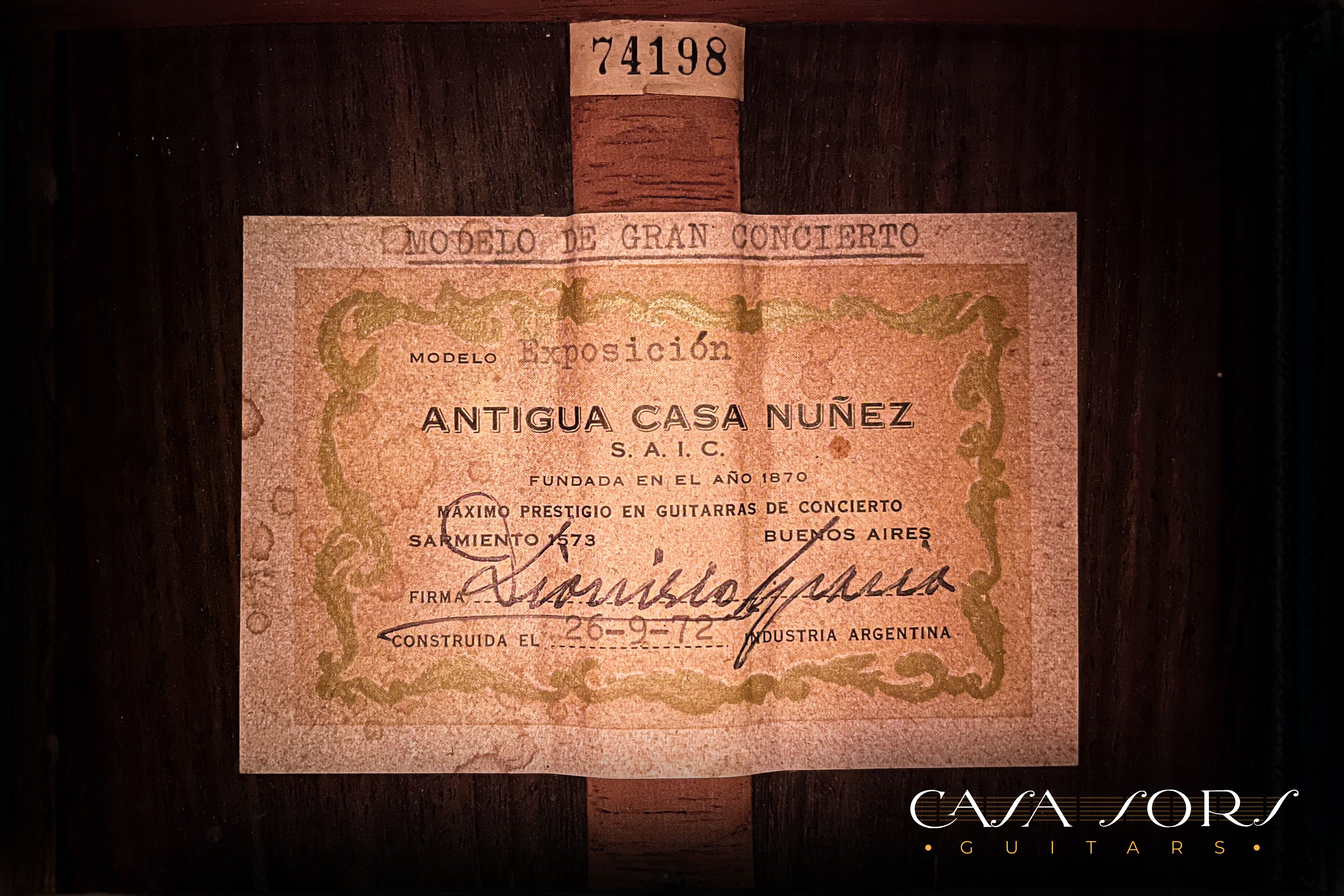 La Antigua Casa Núñez, fundada en 1870, es la guitarrería más antigua de Buenos Aires y se ha convertido en un referente en la industria de la música en el país. No es casualidad que un artista de la sensibilidad de Atahualpa Yupanqui interpretara su música en esta guitarra Antigua Casa Núñez de 1972, ya que se trata de un instrumento magnífico, se convirtió en su compañera inseparable en sus presentaciones y grabaciones. La calidad y el sonido de esta guitarra, sumados al talento de Yupanqui, contribuyeron a la creación de obras maestras y al legado perdurable del artista en la música folklórica argentina.
