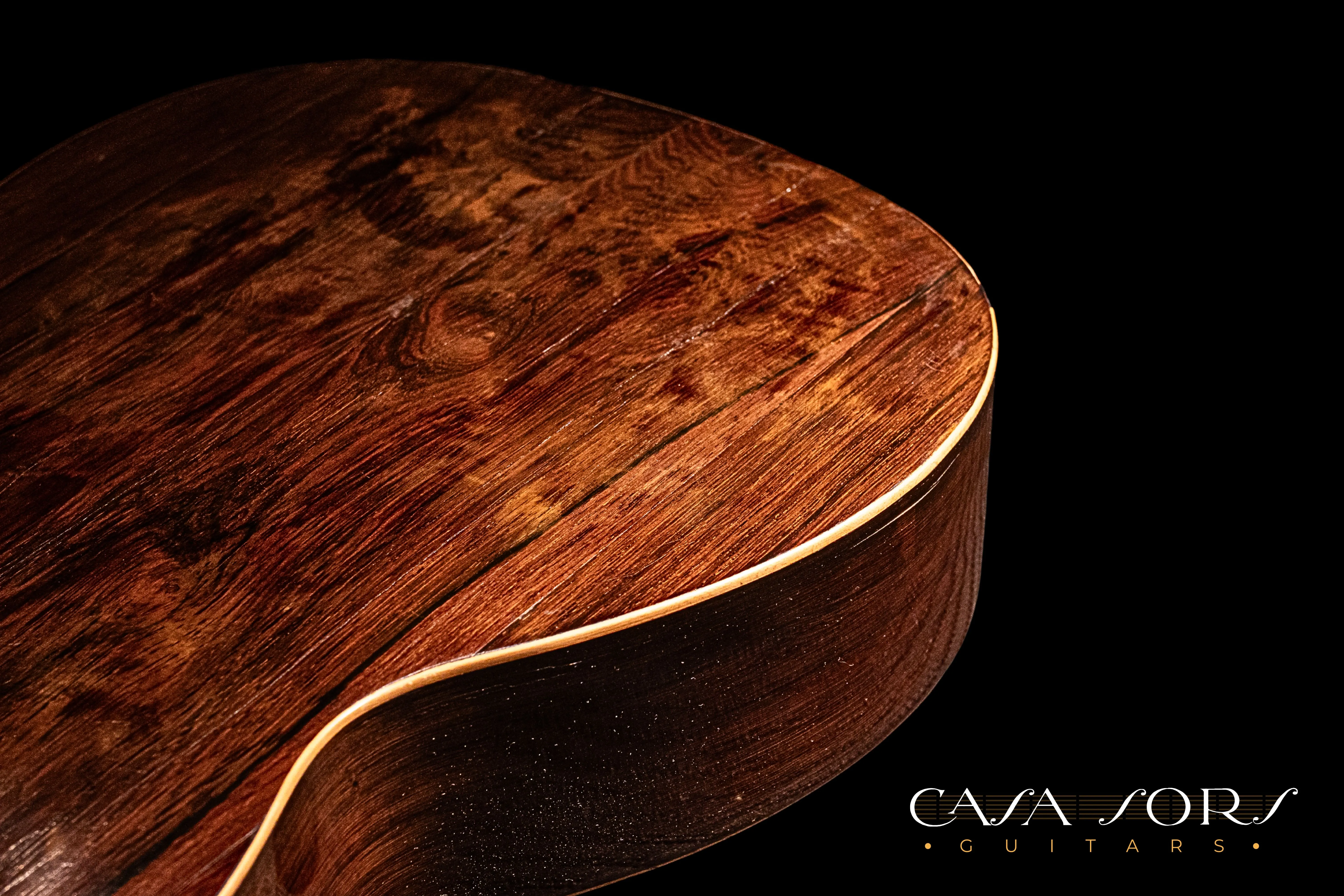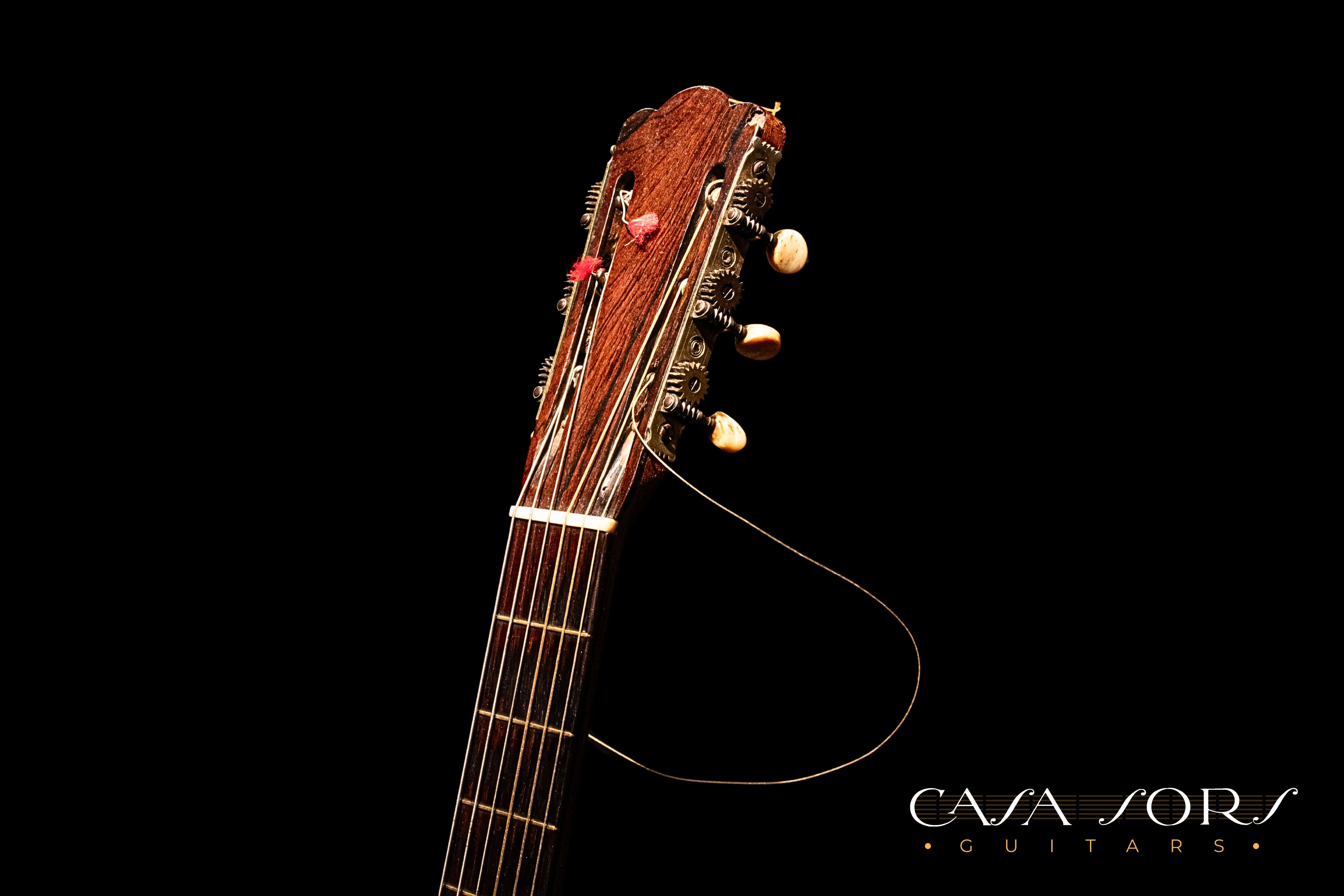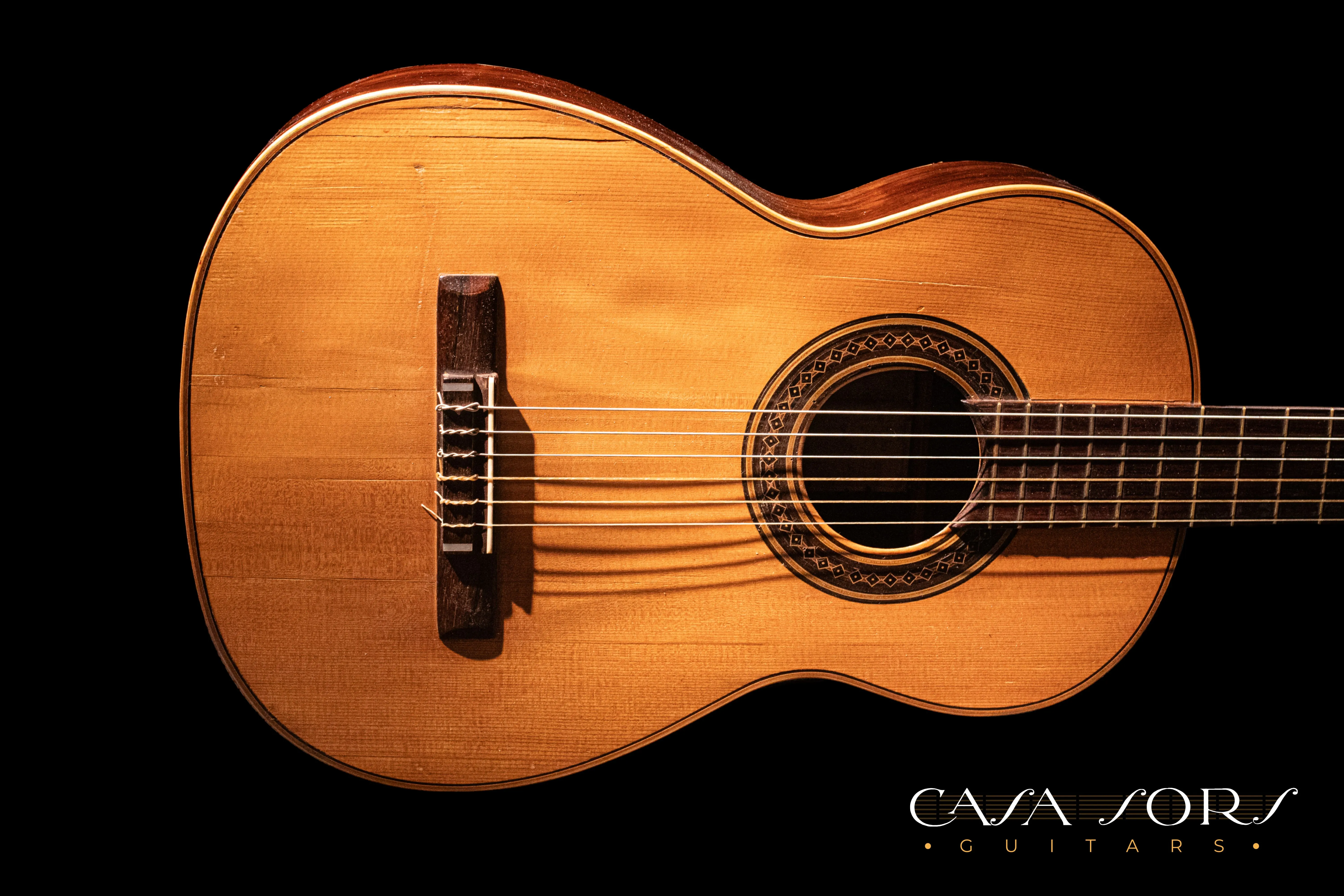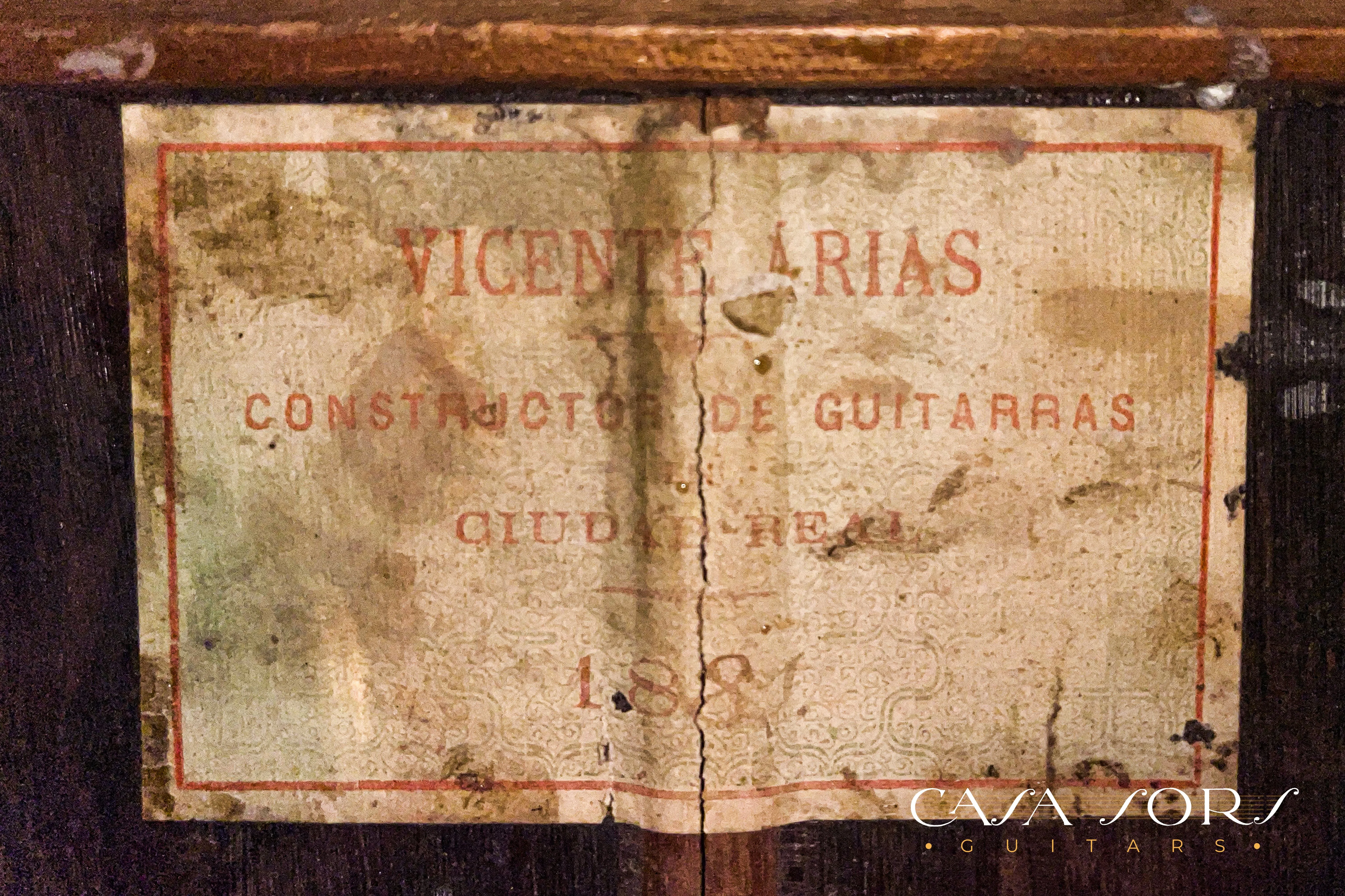 En nuestra colección tenemos dos guitarras Vicente Arias que son hermanas, misma plantilla, boca, cabeza, etc. una es una Arias del año 1880 y la otra es esta de 1881, con la particularidad de que esta utiliza palosanto para los aros y el fondo.
